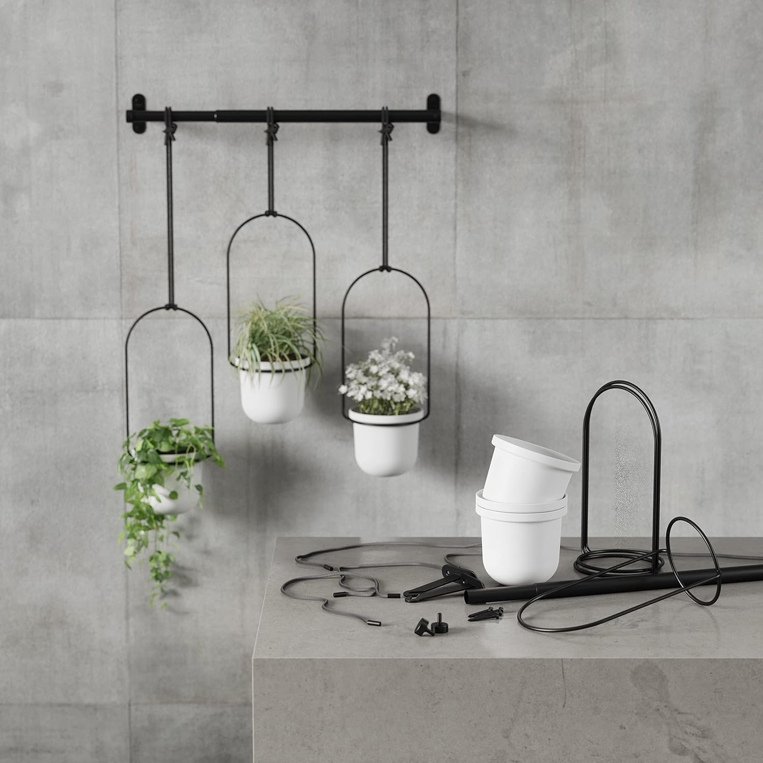 - ADJUSTS HORIZONTALLY AND VERTICALLY: You can slide Triflora’s ropes along the rod and adjust the length of the rope to customize the placement of the hanging planters